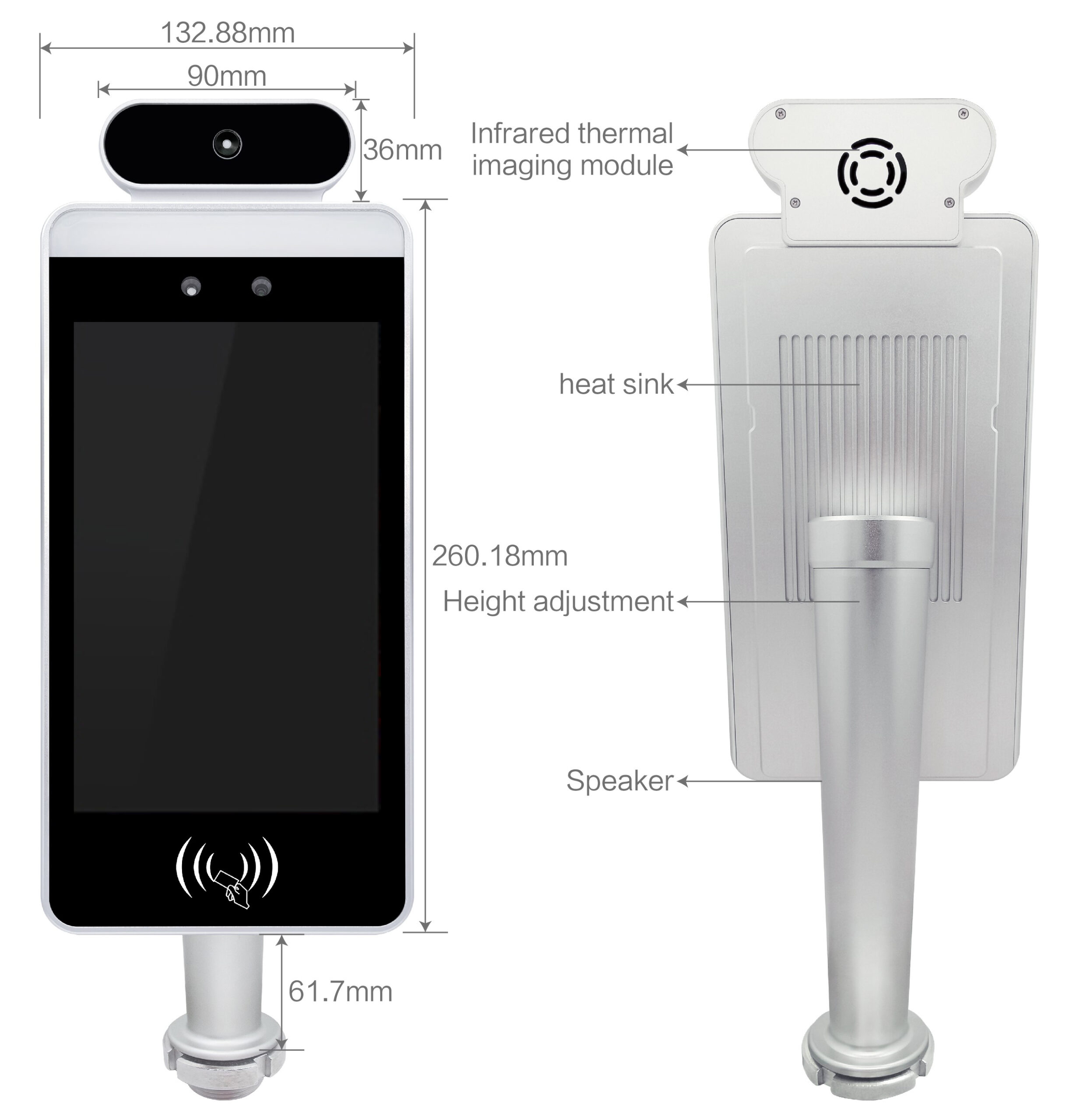 This is a full turnkey system, comprising of a 24/7 IPS panel, dual-lens optical facial recognition cameras, a thermal imaging module, an indication light, optional RFID/NFC integration and even the software to control, record and monitor all the functionality.